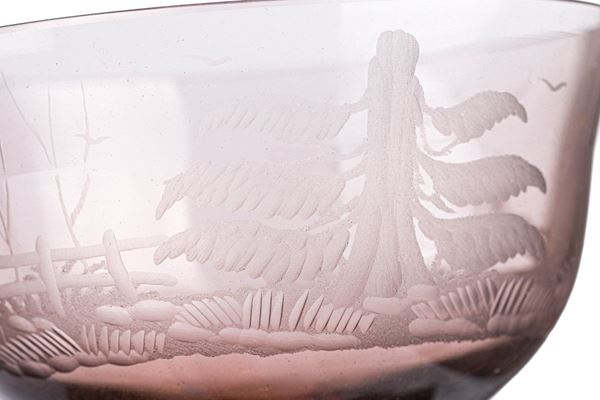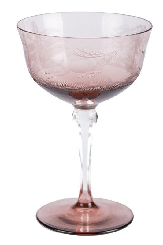 decoro con cervi e arbusti, scheggiatura su un bicchiere