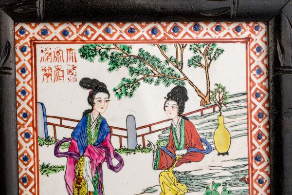 Mattonelle in porcellana dipinta, Cina, metà XX secolo