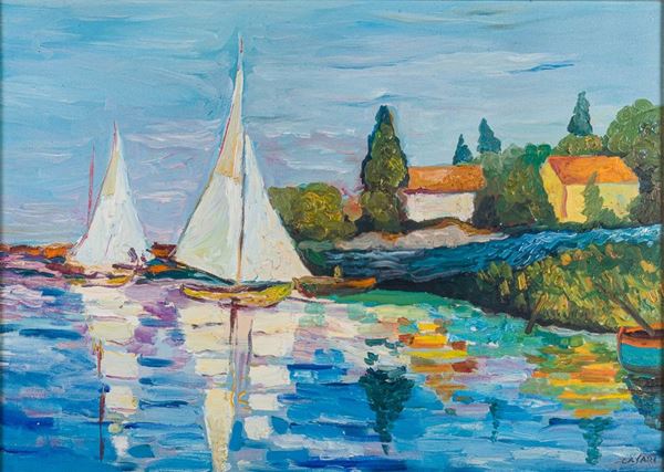 Paesaggio con barche e casolari, XX secolo