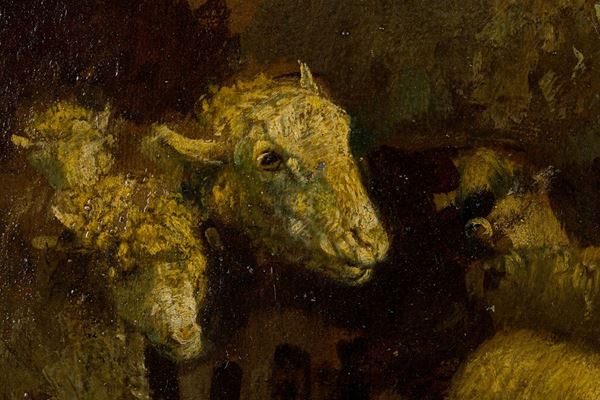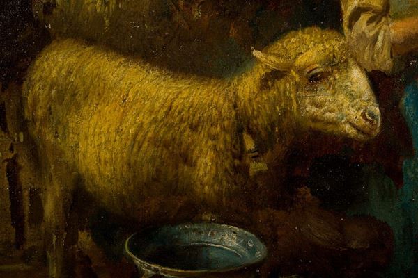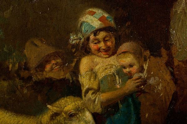 Pastorelli con gregge nella stalla, scuola napoletana, primo quarto XX secolo