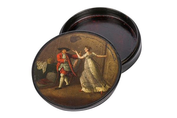 in legno ebanizzato, con coperchio dipinto con scena galante
