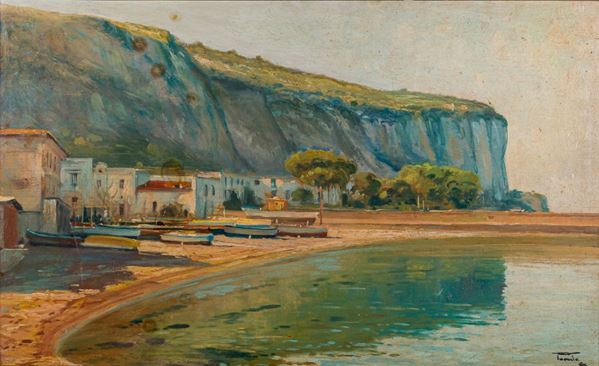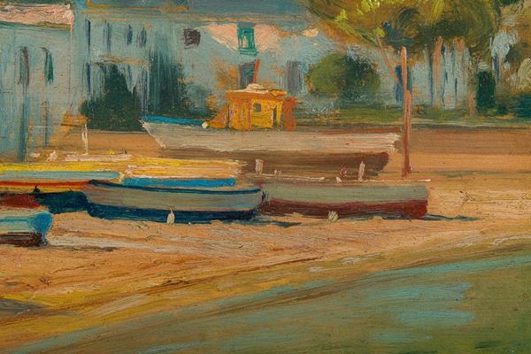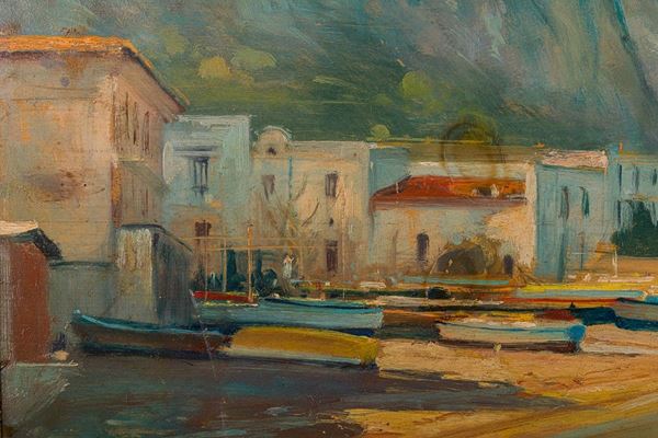 Scorcio di mare con barche e case, XX secolo