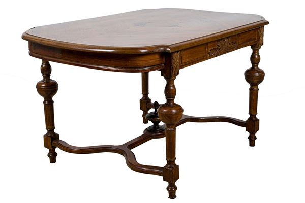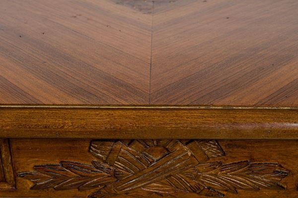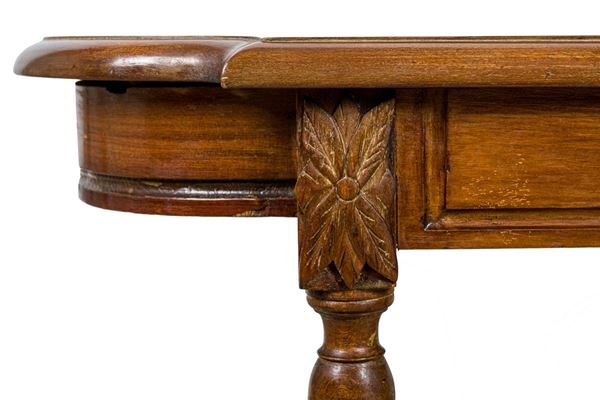 in noce, profilo sagomanto, poggiante su quattro gambe tornite