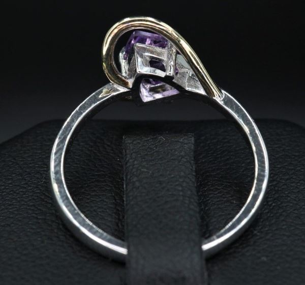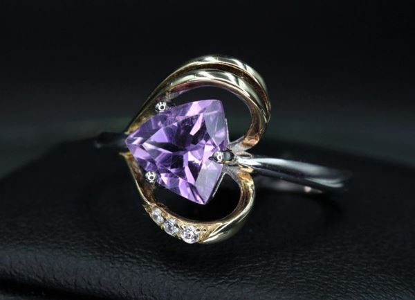Anello a cuore in argento 925 color oro e bianco con ametista e zirconi