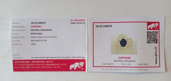 Colore: blu reale - Provenienza: MADAGASCAR - Forma: ovale - Taglio: brillante & a gradini - Misure: 8.19 x 6.17 x 4.47 mm - termotrattato, non trattato - con certificato GFCO (Laboratorio svizzero) numero AD14201P - Peso totale: 18.33 carati - Taglia: 57