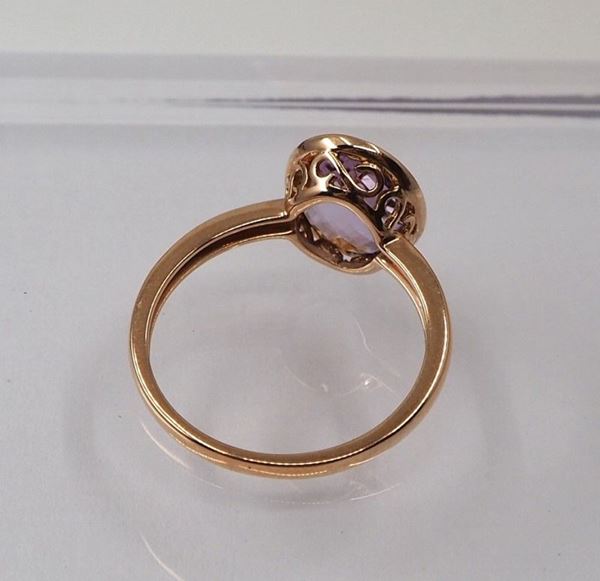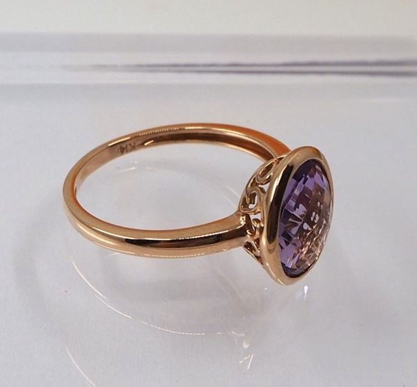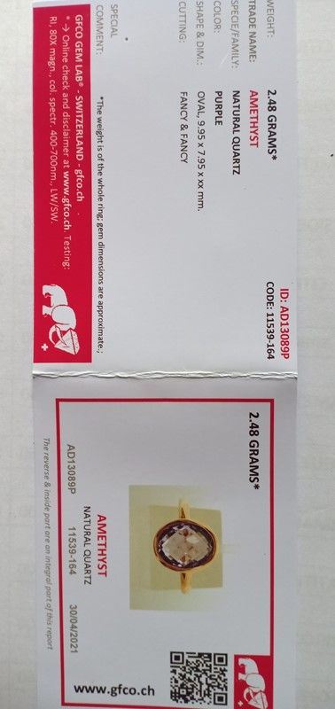 Colore: viola - 2.40 carati - Provenienza: Brasile - Forma: ovale - Dimensoni della pietra: 9.95 x 7.95 mm - Taglio: fantasia & fantasia - Chiarezza: VVS - non termotrattato, non trattato - con certificato GFCO (Laboratorio svizzero) numero AD13089P - Peso totale: 2.48 grammi - Taglia: 56