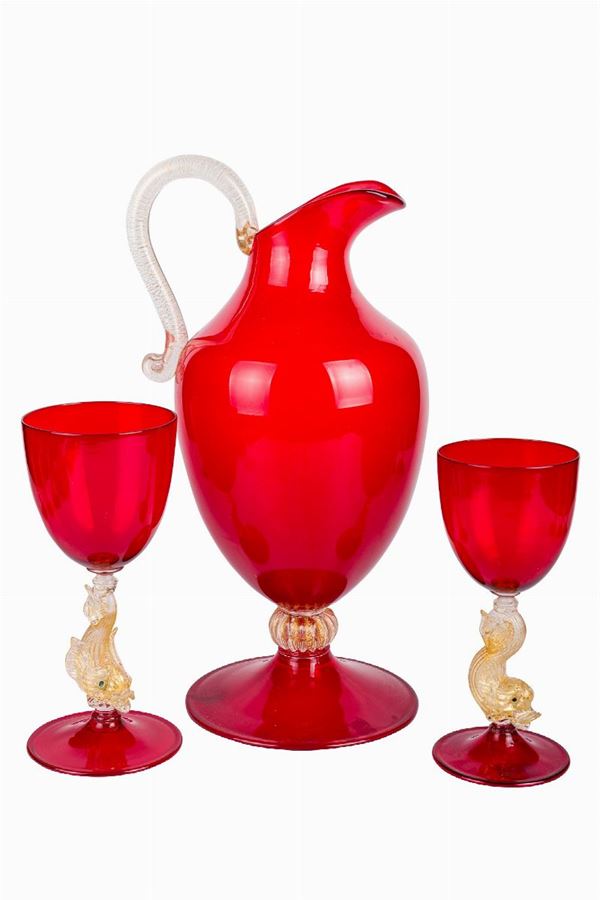 Lotto di una brocca, 3 bicchieri da acqua e 5 bicchieri da vino, Murano, XX secolo