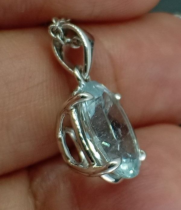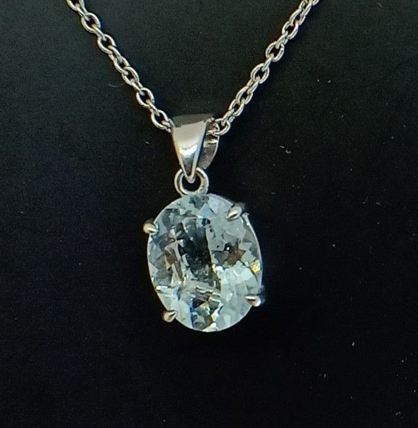 Ciondolo in argento 925 rodiato con acquamarina naturale