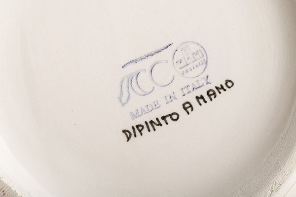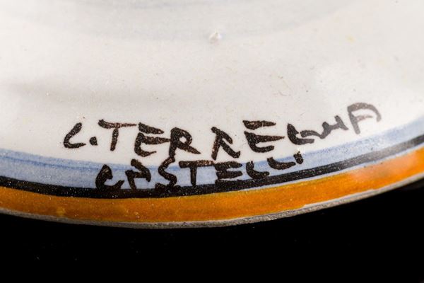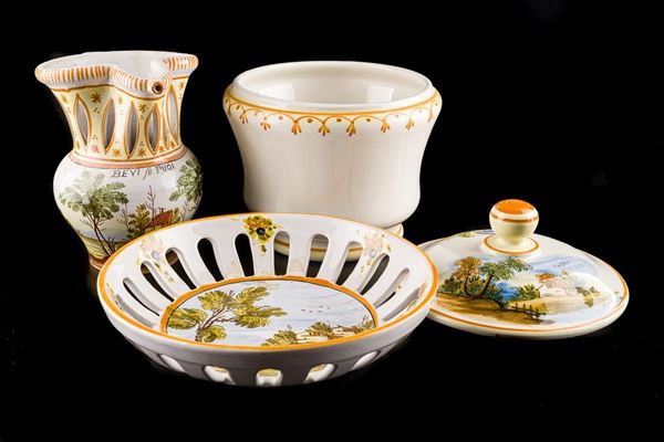 Lotto di sette oggetti in ceramica, manifattura di Castelli, XX secolo
