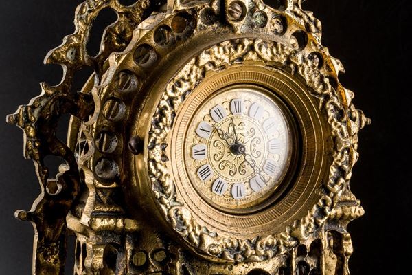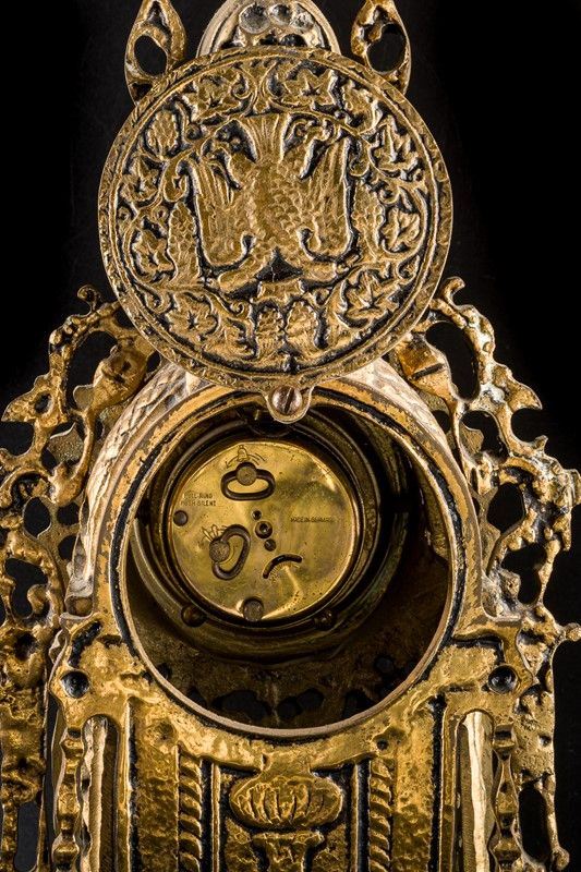 in bronzo dorato, con ricca decorazione, quadrante con numeri romani