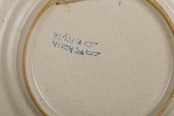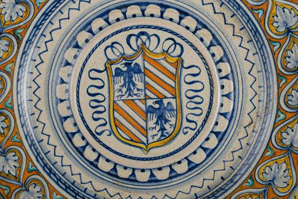 in ceramica dipinta, con stemma araldico, firmato sul retro