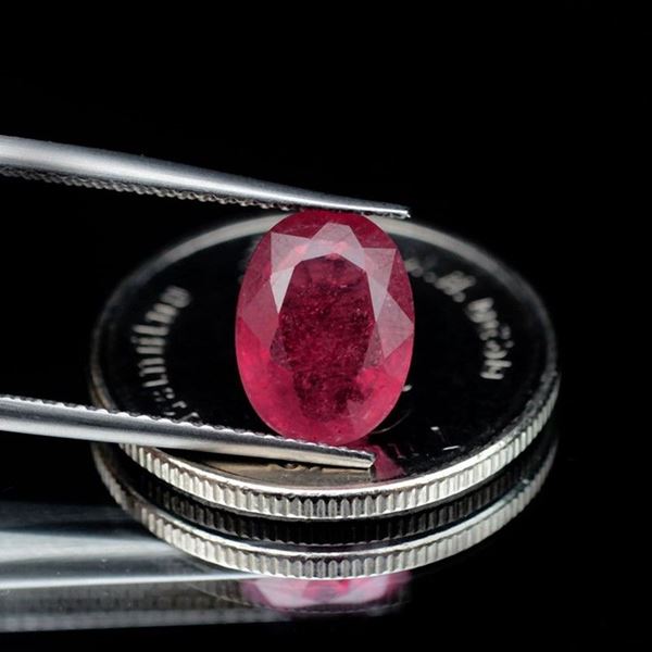 Colore: rosso/rosato - 3.04 carati - Provenienza: MADAGASCAR - Forma: ovale - Dimensioni: 9.63 x 7.34 x 4.38 mm - Taglio: brillante & a gradini - termotrattato e trattato - con certificato GFCO (Laboratorio svizzero) numero AD14334P