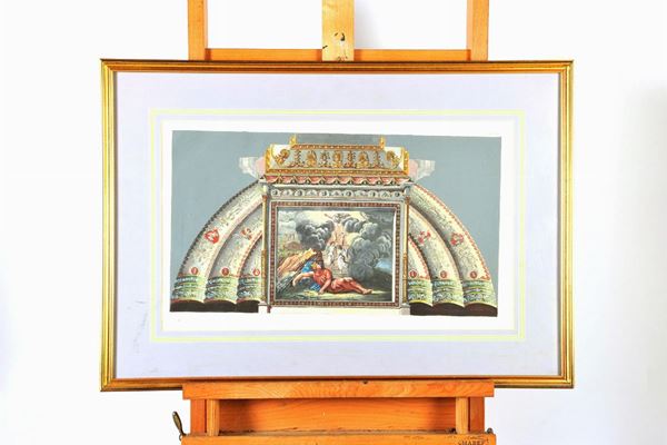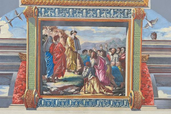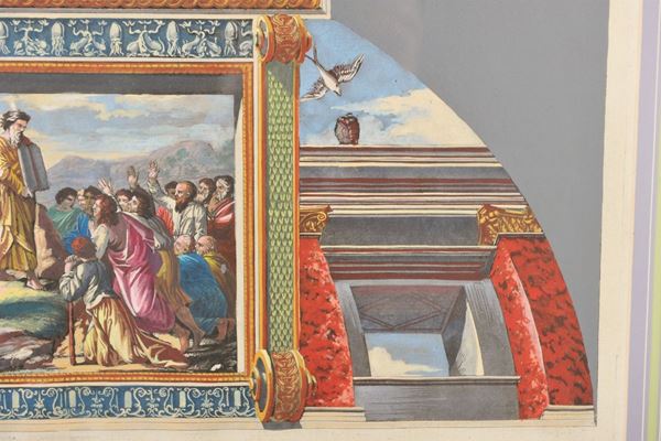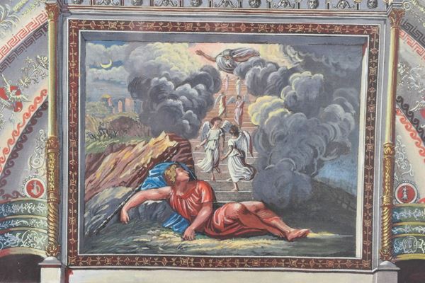Entro cornice, raffiguranti "Mosè che legge le Tavole della Legge" e "Il sogno di Giacobbe"
