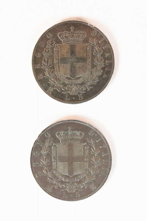 5 lire, regno Vittorio Emanuele II, 1877 e 1872. Peso: 82 gr