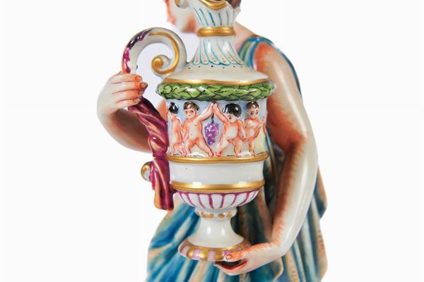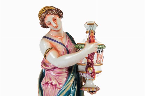 Scultura in volume in porcellana policroma. Piccole mancanze al vaso.