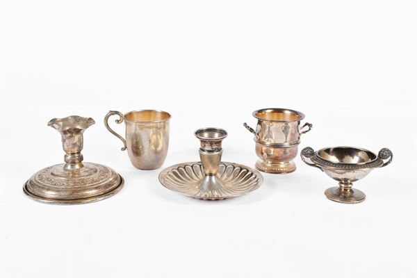 Lotto di 11 oggetti in argento 800/1000, Italia, seconda metà XX secolo