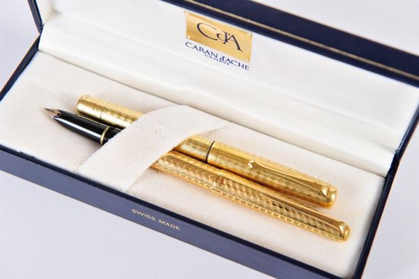 Di cui uno laminato in oro 750/1000. Un pennino mancante. In astuccio non pertinente.