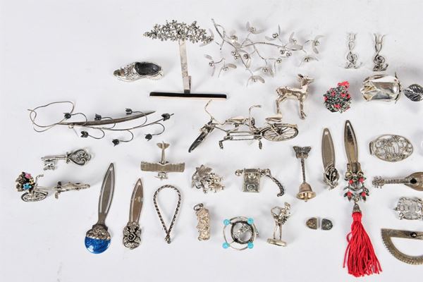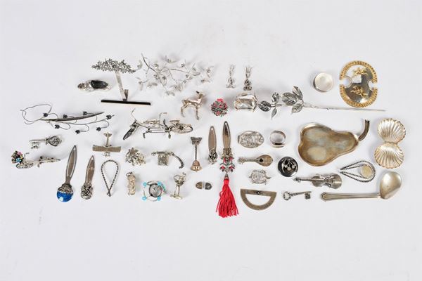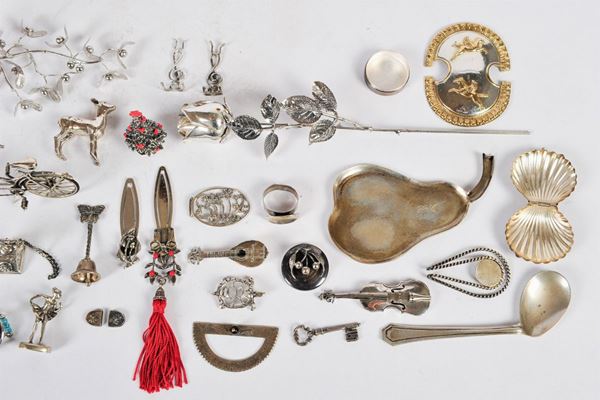 Lotto di 36 oggetti in argento 800/1000 e 925/1000, Italia, seconda metà XX secolo