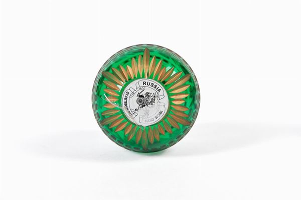 in vetro colorato, parti sbalzate ed incise.