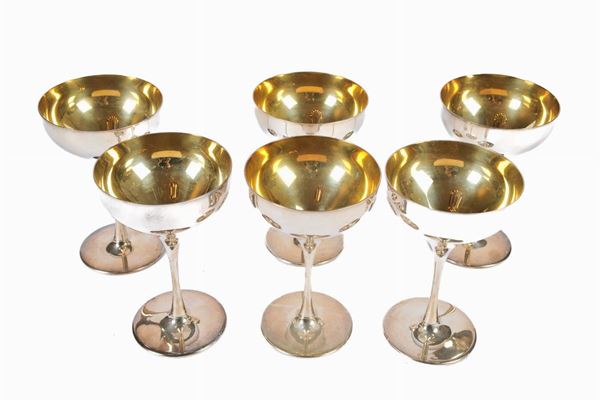 Lotto di 6 coppe in argento 800/1000, Italia, seconda metà XX secolo