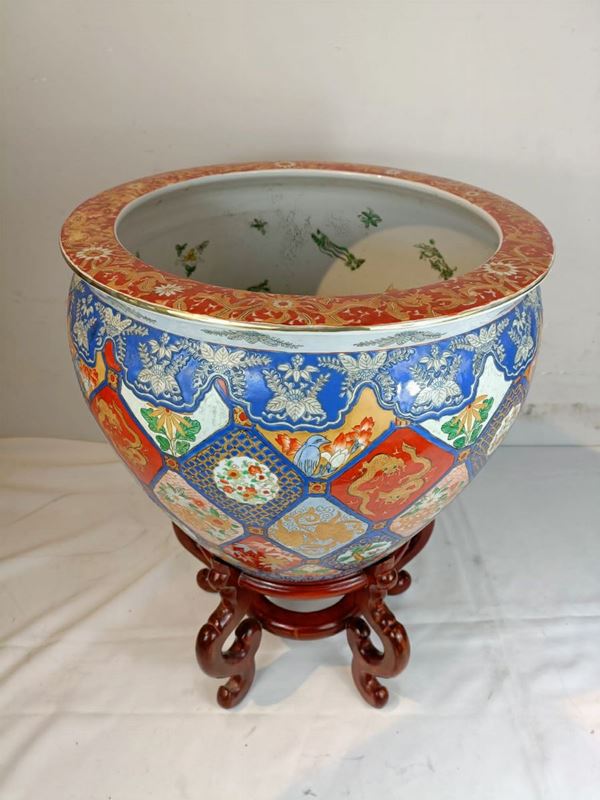 Singolo Cachepot in porcellana policroma, Cina, metà XX Secolo