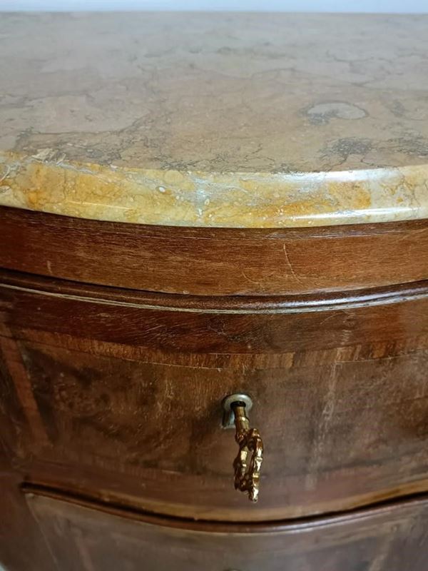 Linea Luigi XV, a due cassetti con piano in marmo giallo di Verona. Legno di noce.