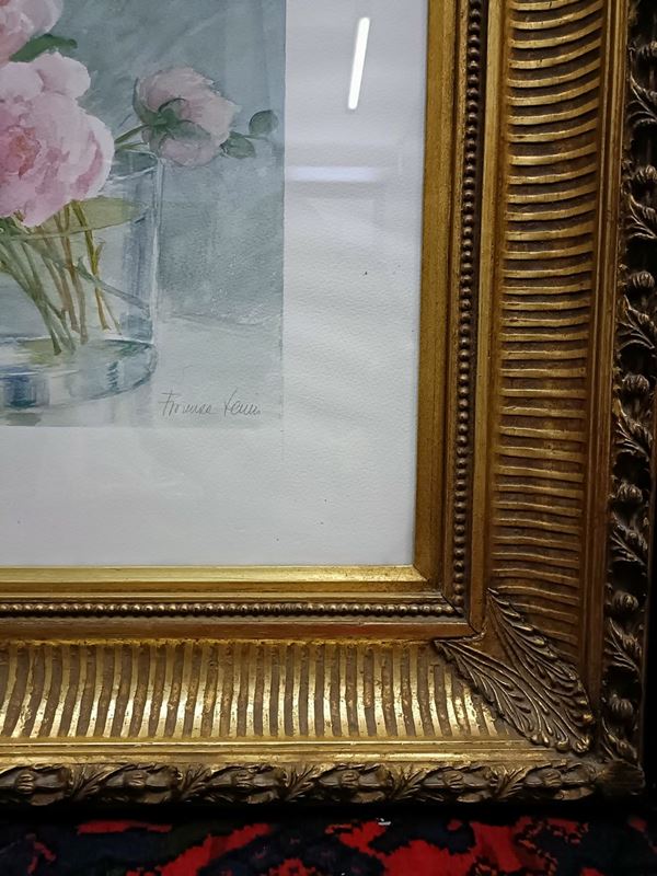 In legno dorato. Acquerelli a soggetto floreale, firmati in basso a destra.