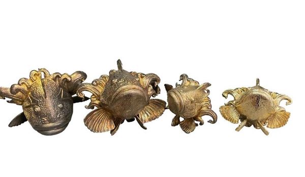 Lotto di 4 elementi decorativi zoomorfi in bronzo dorato, XX secolo