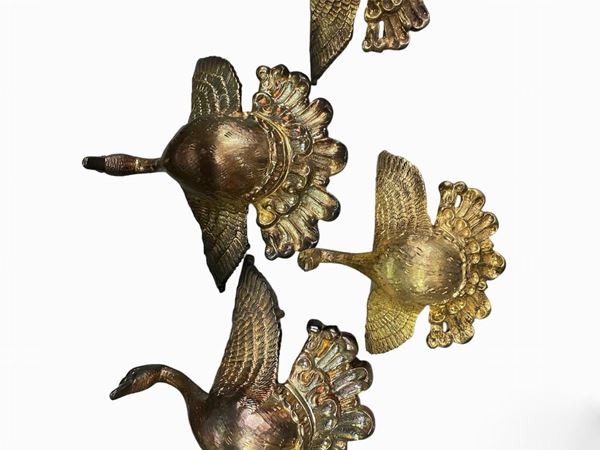 Lotto di 6 elementi decorativi zoomorfi in bronzo dorato, XX secolo