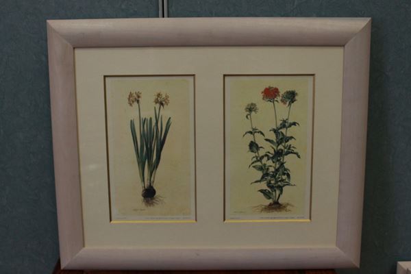 Raffiguranti botanica, entro cornice in legno dipinto bianco.