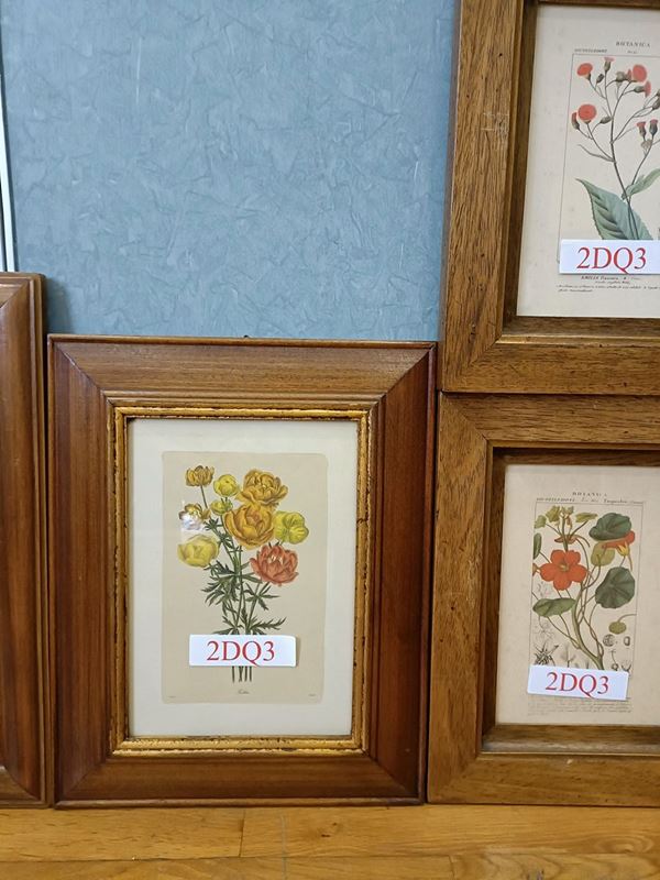 A forme e misure diverse, con stampe di botanica, misure 43 x 33 cm; 38,5 x 30,5 cm; 34 x 26,5 cm.