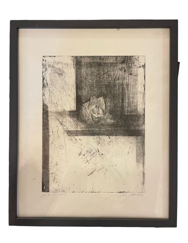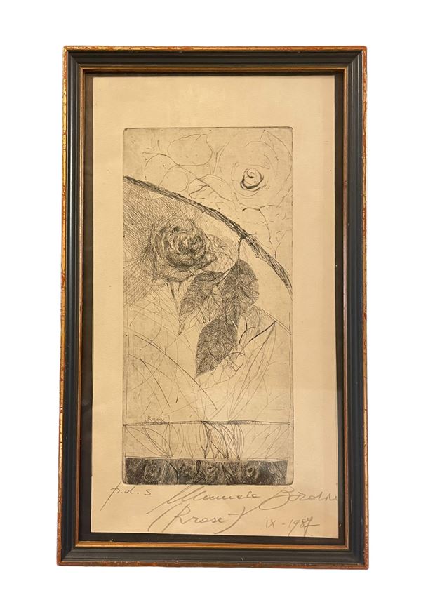 firmate Manuela Bordin. Misure stampe: 11 x 17cm; 14,5 x 29,5cm; 24 x 11cm; 35 x 26cm; 10 x 26cm; 10 x 26cm. Entro cornici.