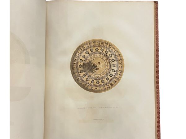 Parigi, tipografia Martinet, 1861. In-folio, 34 pagine. 51 tavole. Montato su copertina a piena pelle , doppie filettature dorate sui piatti, dorso costolato a 5 nervi con titoli in oro decorato con riquadri dorati contenenti motivi ad imitazione del XVI secolo, testata dorata.