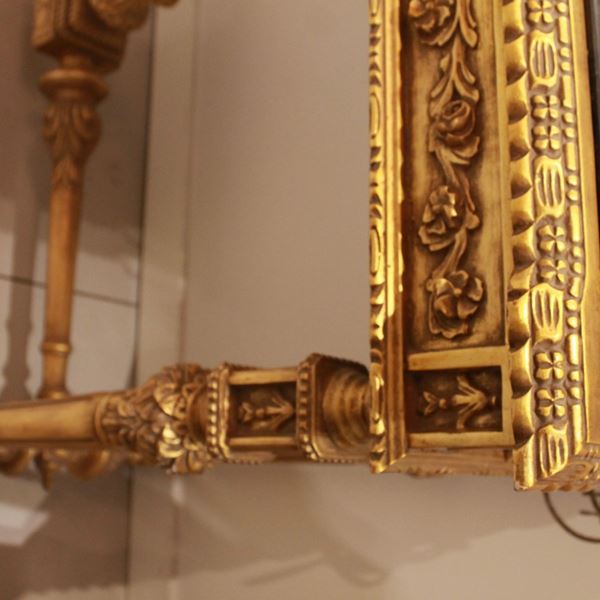 Con piano superiore in marmo nero incassato. In legno dorato e intagliato. manifattura moderna.