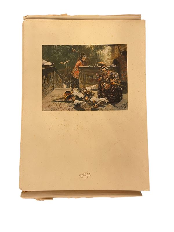 Le 25 tavole sciolte duplicate in questo album, sono riprodotte nelle loro dimensioni originali e conservate all'interno di una cartella rifida in pergamena beige con cifre dorate e doppia chiusura in osso. Rivestimento interno fortemente compromesso. Foxing presente sulle tavole. Descrizione e indice separati.