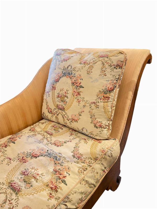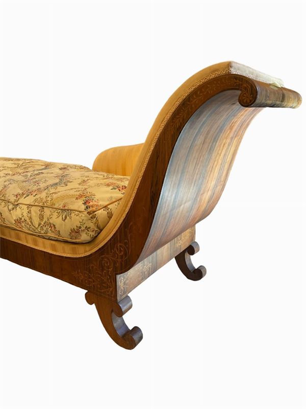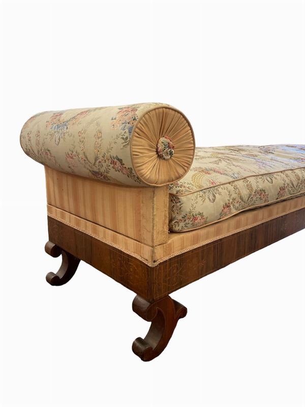 in noce con intarsi in bosso, con rivestimento in broccato di seta