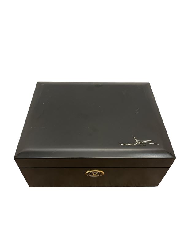 Nero opaco, fodera in cedro spagnolo. Mancante di vassoio interno. Presentato con 4 cutter.