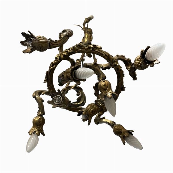 a 9 luci, con puttino superiore. Bronzo cesellato