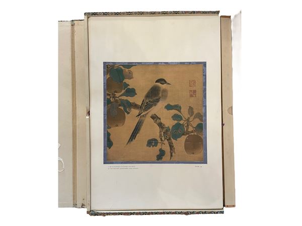 16 pagine di testo introduttivo rilegato. Tavole sciolte del volume dalla 132 alla 193 complete. Doppia cover proteggi tavole, rigide in carta di riso. Tessuto usurato; bordi usurati. tessuto del bordo inferiore del dorso strappato, sfregato e scrostato. bordo superiore del dorso strappato e incrinato con tavola sconcertata; doppia chiusura in osso di cui uno mancante. Le tavole presentano foxing leggero, chiaro e maculato, i colori rimangono brillanti; casi di sbavature.