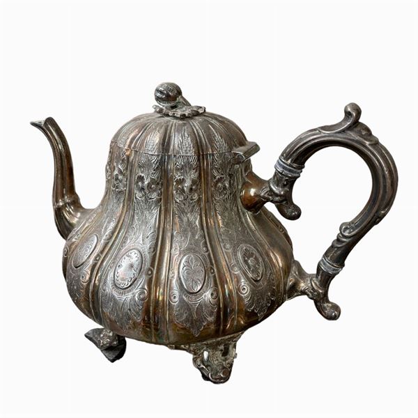 Composto da un vassoio con ripiano in marno. due teiere e un orologio. Dimensione vassoio: 46 x 33 cm.