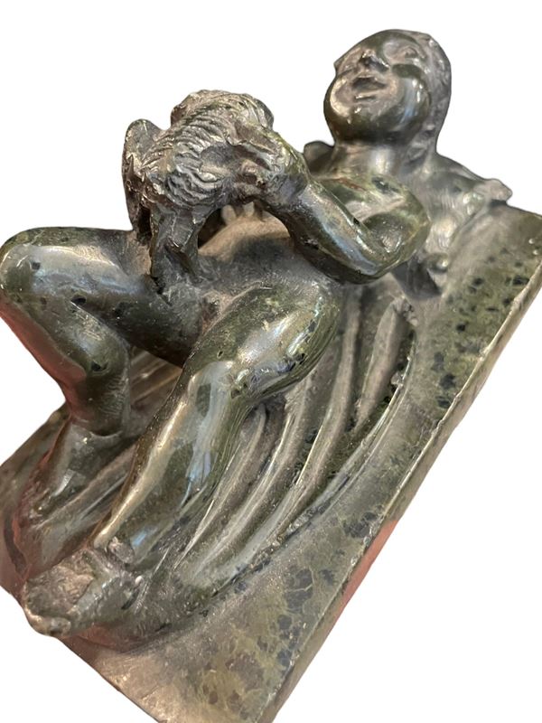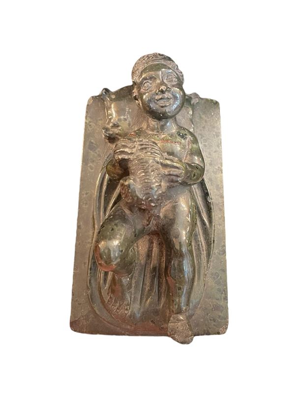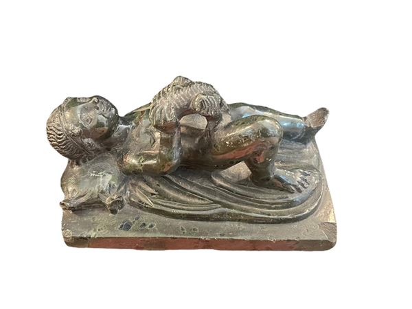 Puttino sdraiato che gioca con un animale, Italia, XVIII secolo