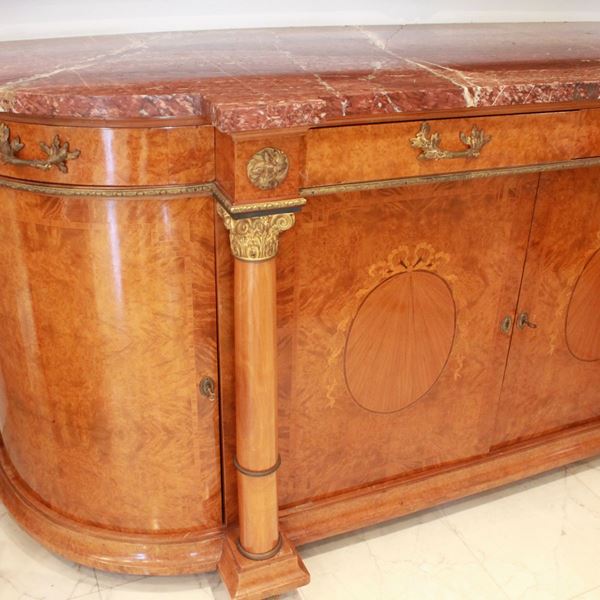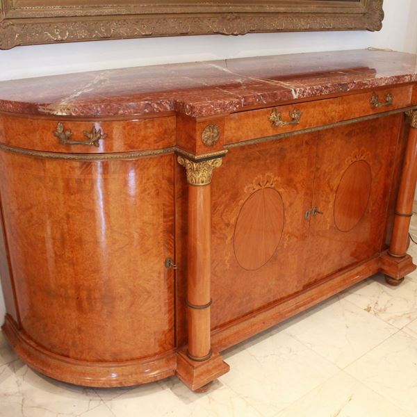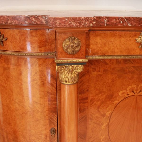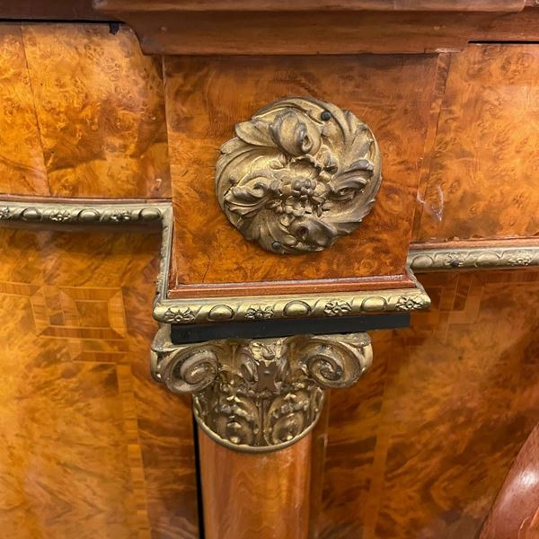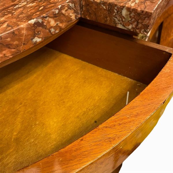 con piano in marmo rosso Griotte/Pirenei e applicazioni in bronzo. 4 cassetti e tre scomparti.