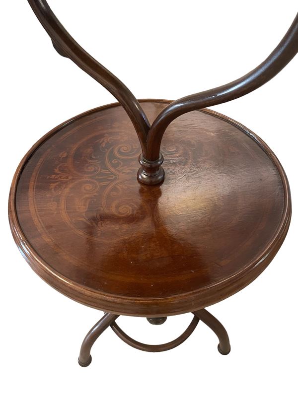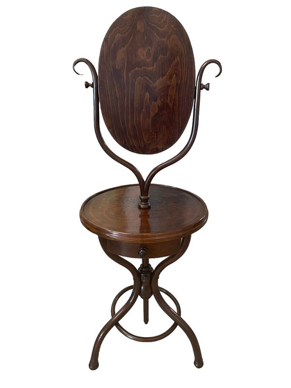 con piano circolare decorato a motivi floreali, con specchio ovale e cassetto, in legno curvato, Thonet