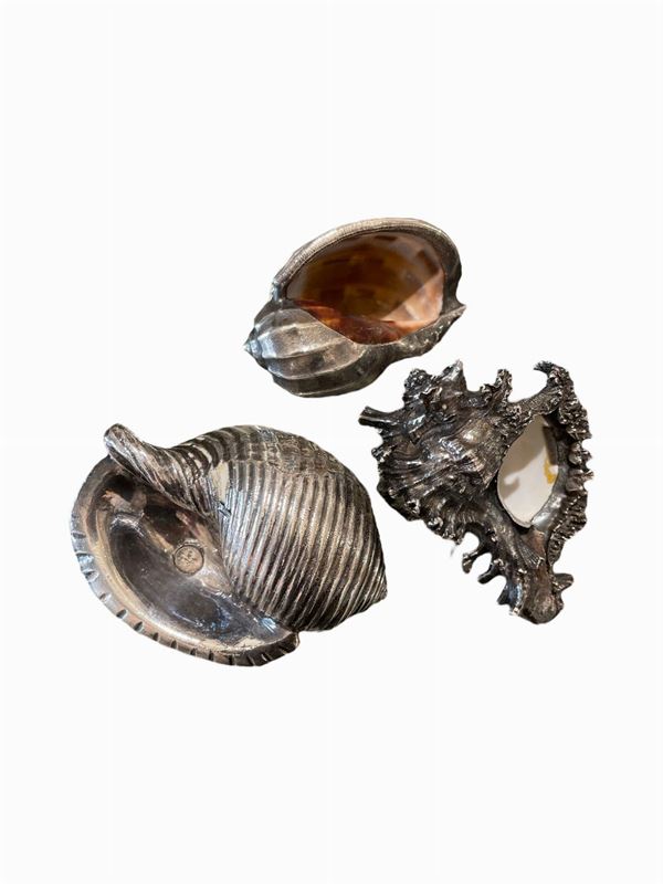 Tre conchiglie in lamina d'Argento 999 di cui una punzonata Federico Buccellati