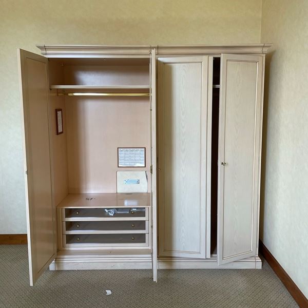 a quattro ante e due scomparti, con cassettiera interna a tre cassetti. Difetti. In vendita da smontare, il mobile si trova ai piani superiori. Smontaggio, imballaggio e movimentazione a carico dell'acquirente.