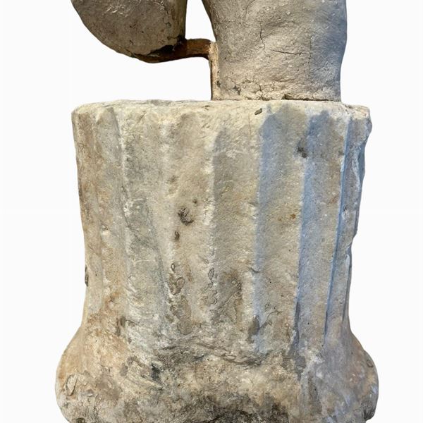 in marmo bianco, con colonnina scalanata. Torso fine '800, colonnina XVI sec.