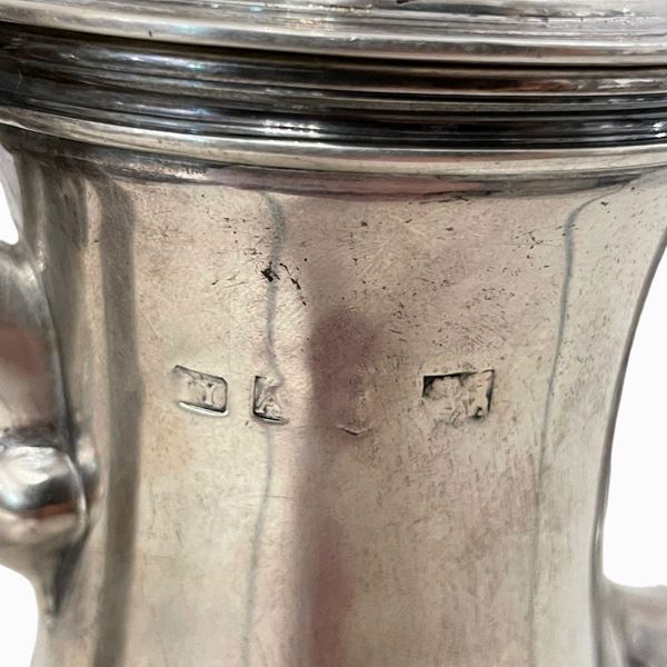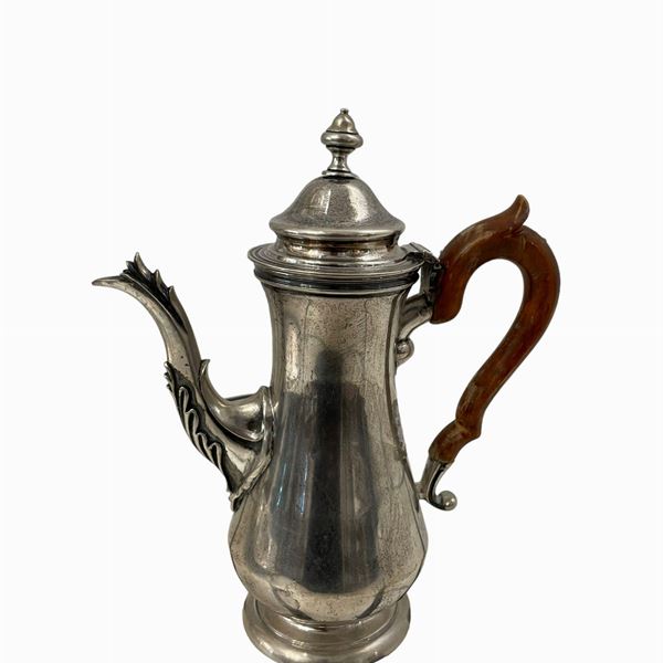 Manico in legno. Argento 800 su 1000. Peso lordo 748 grammi. Argenteria bolli inglesi. Parti graffiate ed un piccola bozzo sulla cinta del corpo