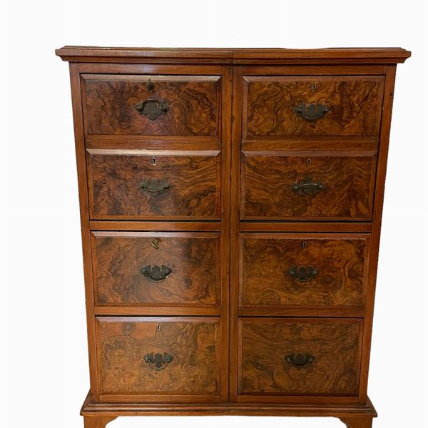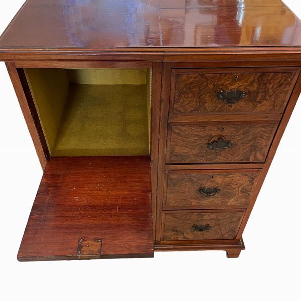A quattro cassetti e due calatoie superiori, in legno di mogano.
