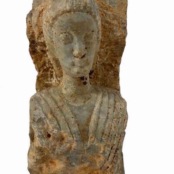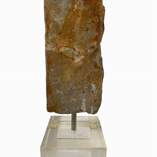 Scultura in forma, in materiale lapideo, di magistrato. Su base in perspex