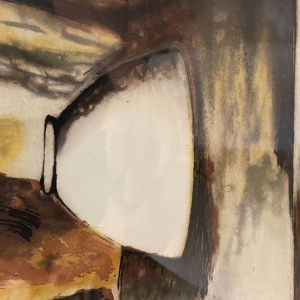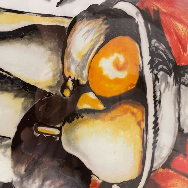 Dimensioni della lastra: 44 x 108,5 cm. Esemplare: 67/90, numerato e firmato a matita. In cornice bugnata in metallo argentato e specchio incassato, piccola rottura nella parte inferiore della cornice specchiata